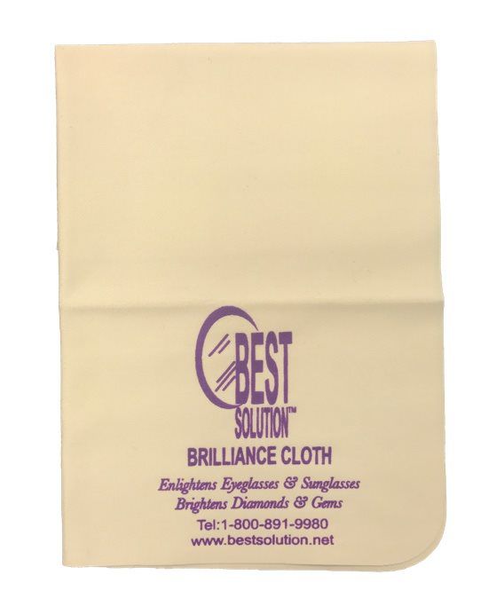 Best Solution’s Brilliance Cloth for EyeGlass, Jewelry, and Gemstones. Our Brilliance Microfiber cloths are made of the finest microfiber cleaning cloths. The fibers are 1/100th the diameter of a human hair, making them so thin that the human eye is not able to see them. The ultra fine microfiber eyeglass, jewelry, and gem cloth is designed specifically for cleaning those smudges off your glasses and gemstones. Dimensions 8 x 8 in.